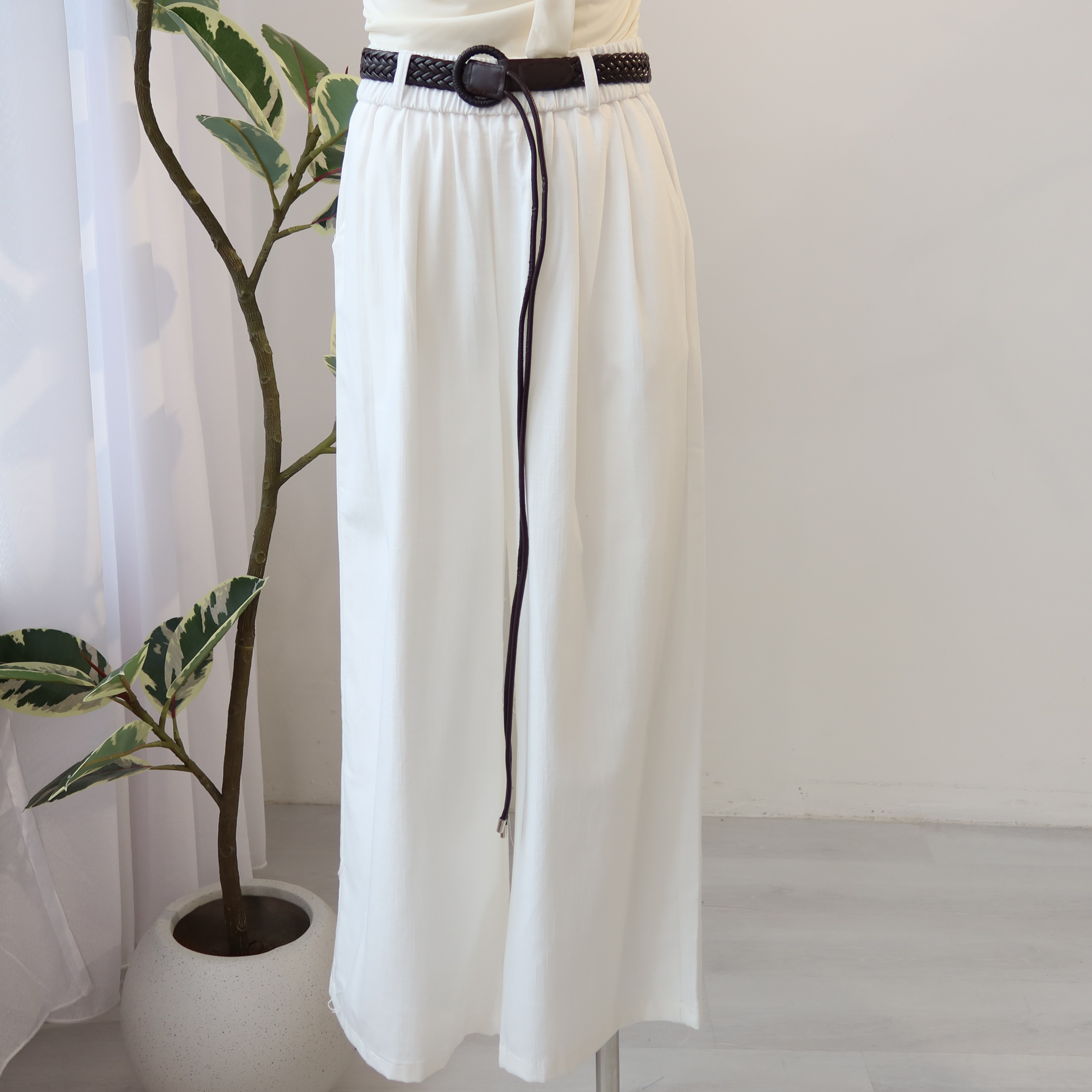 Woven Belt Wide Leg Pants 编织腰带阔腿裤