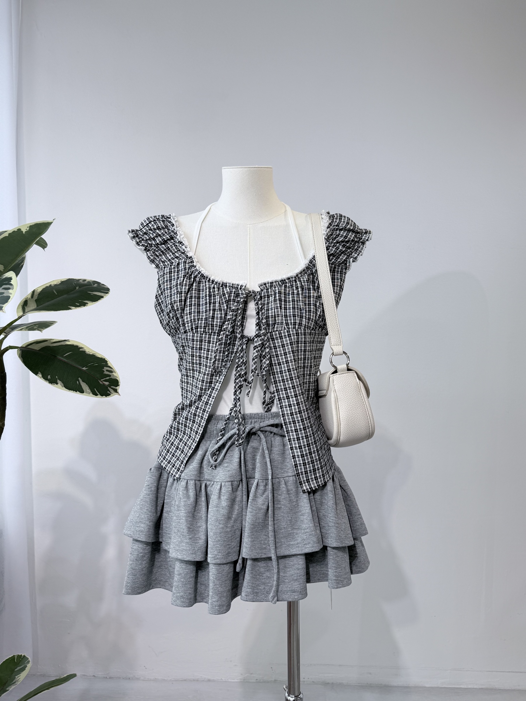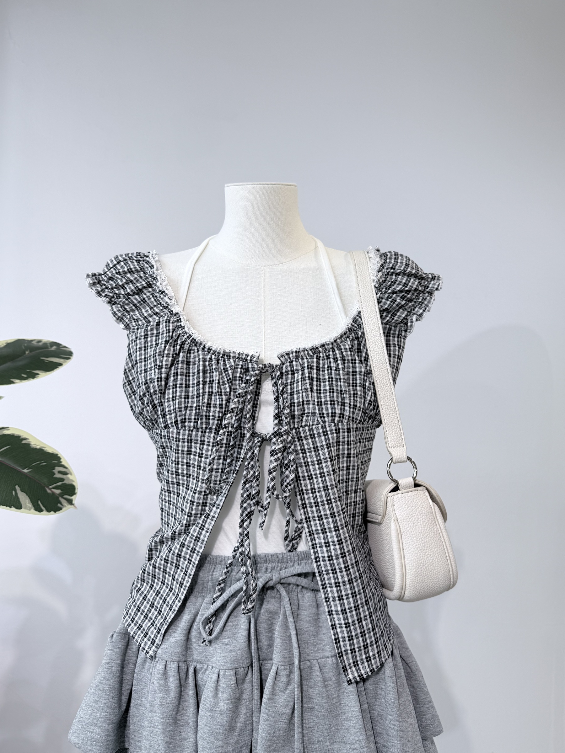 Tie-Front Check Blouse 绑带格纹小衫