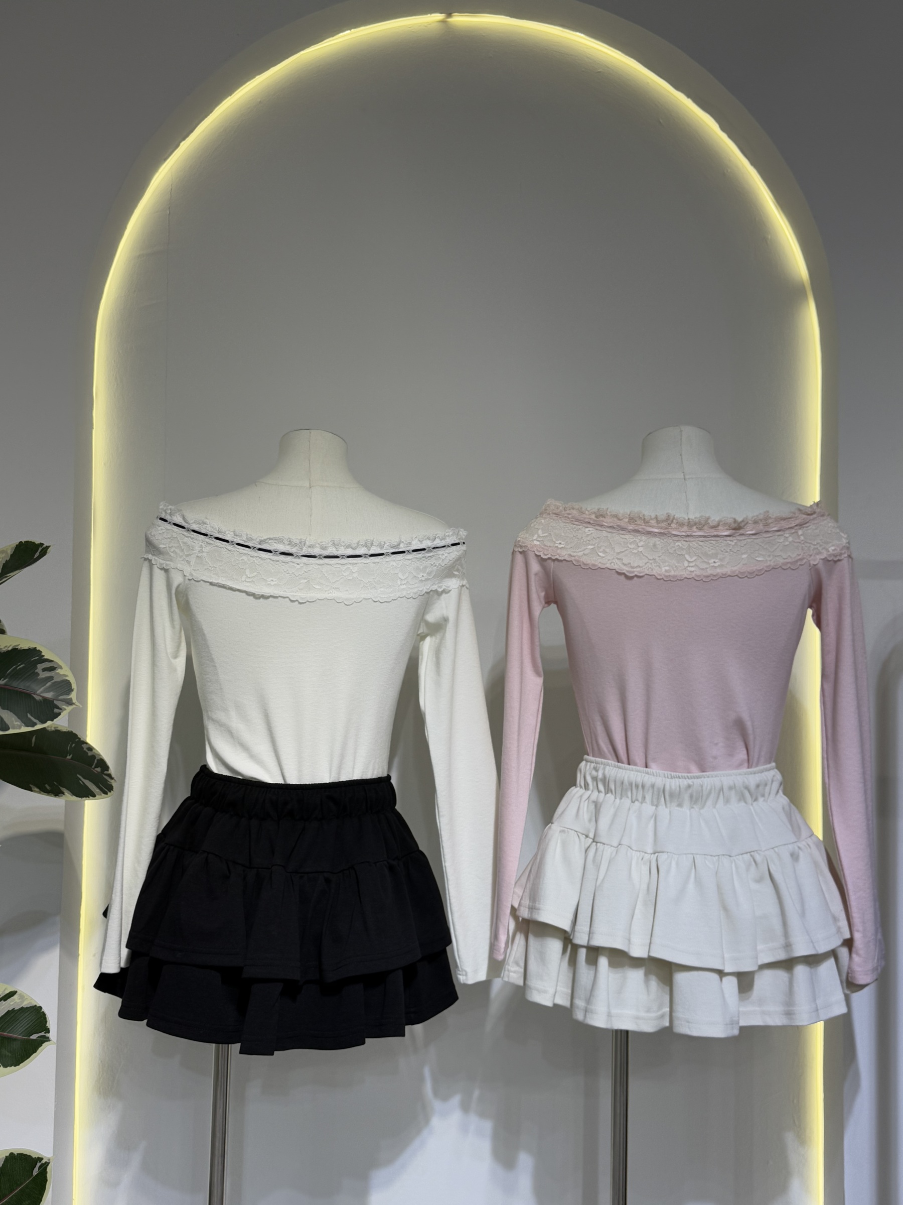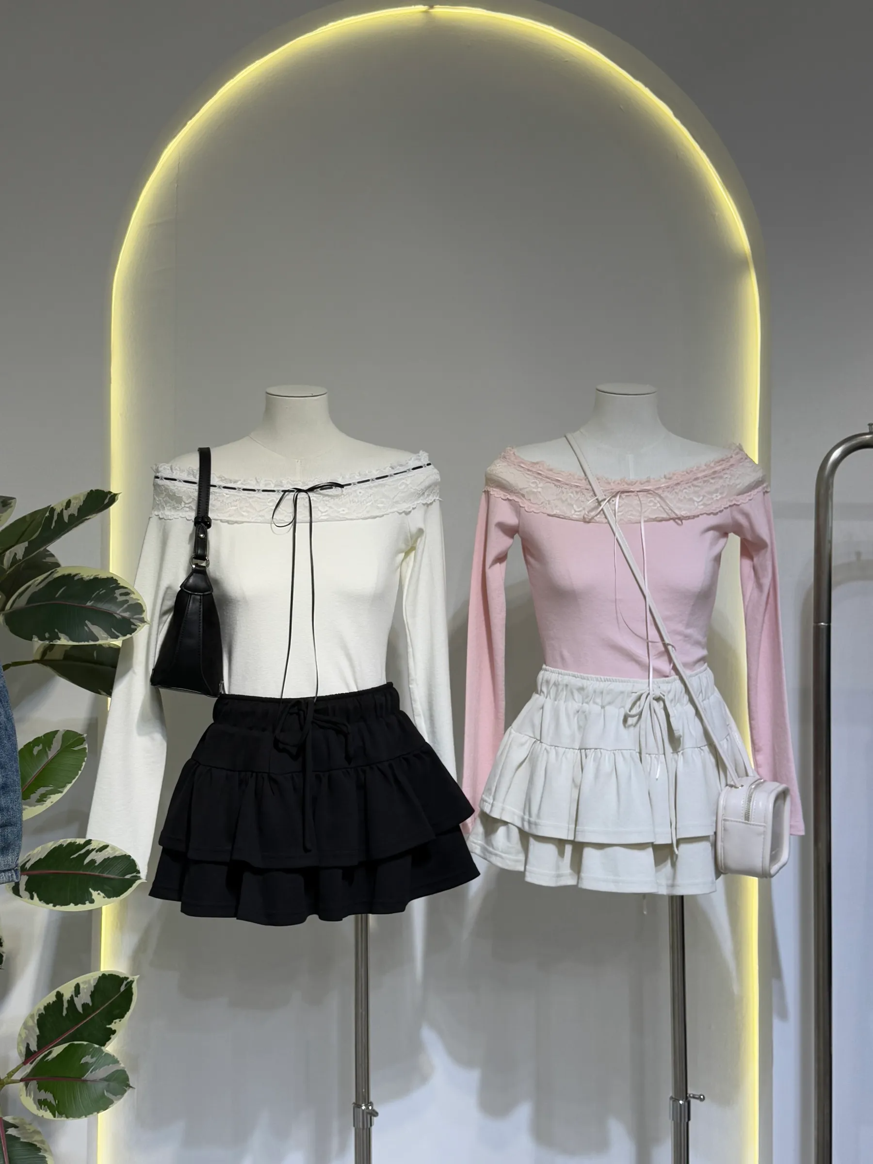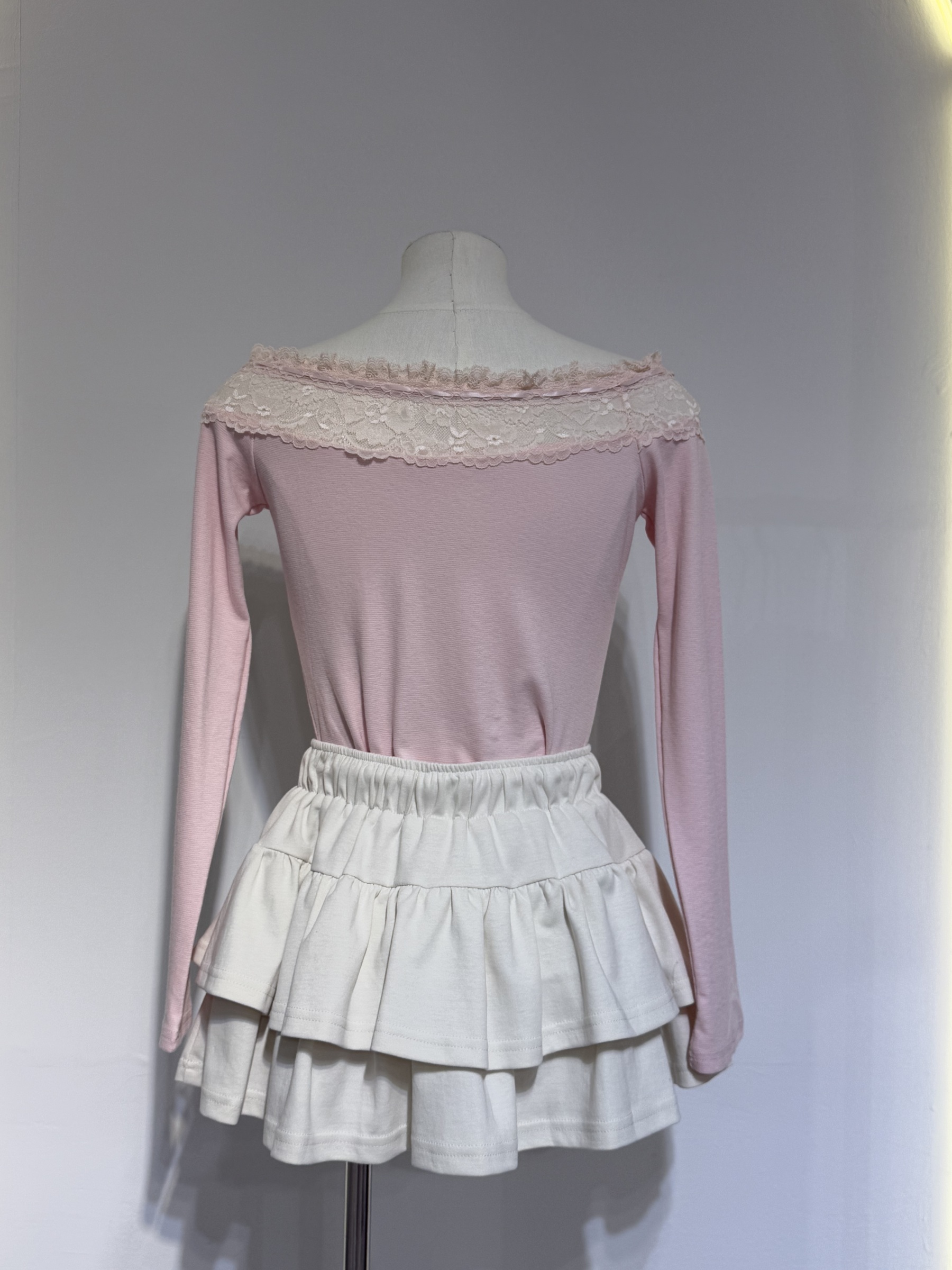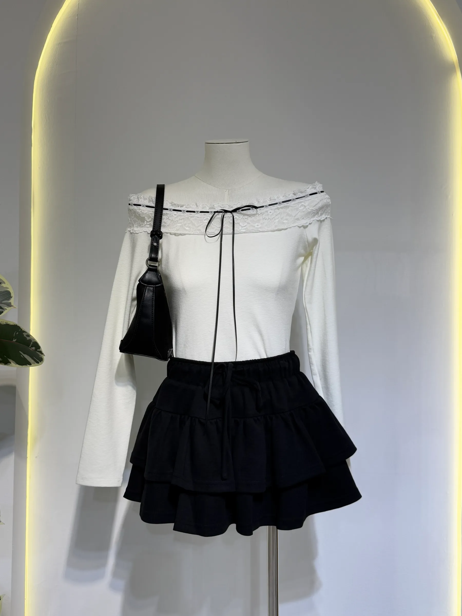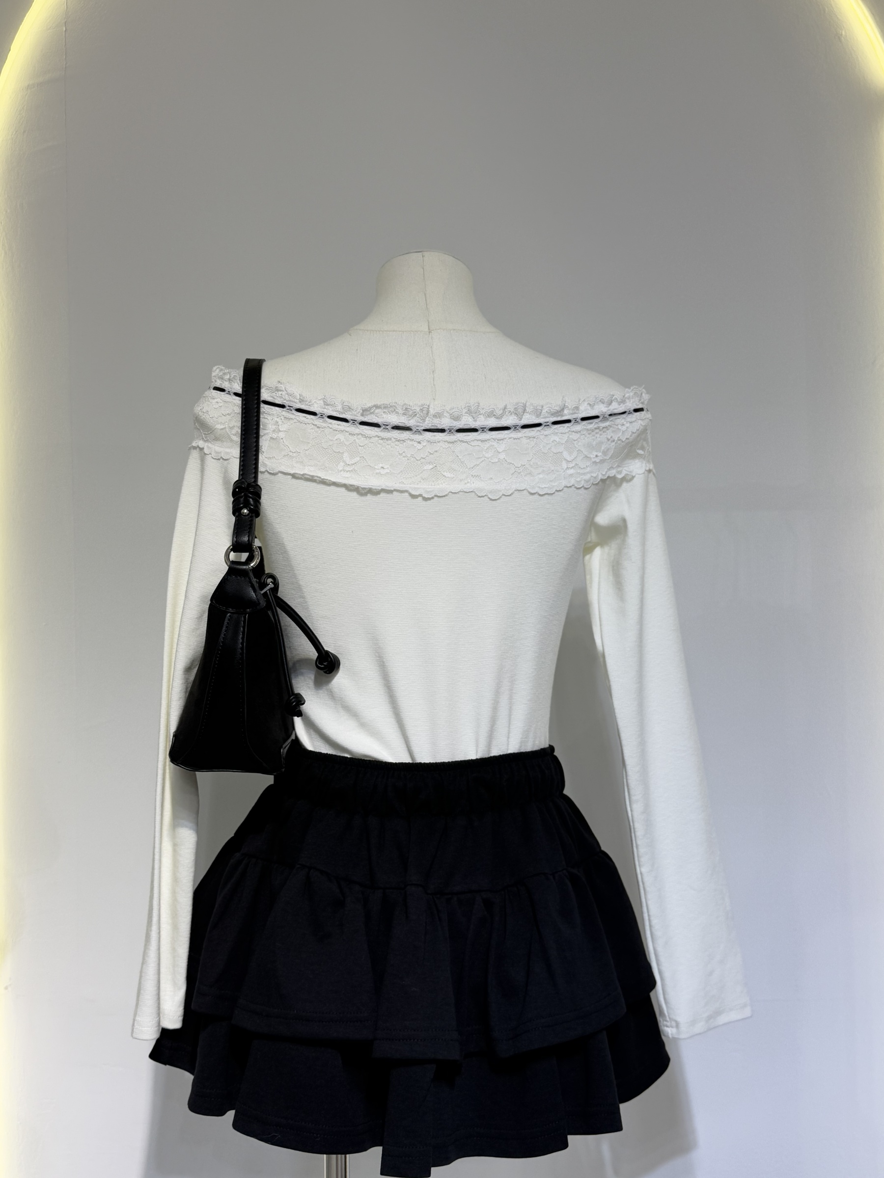 Lace Off-Shoulder Tie Top 蕾丝一字领系带上衣