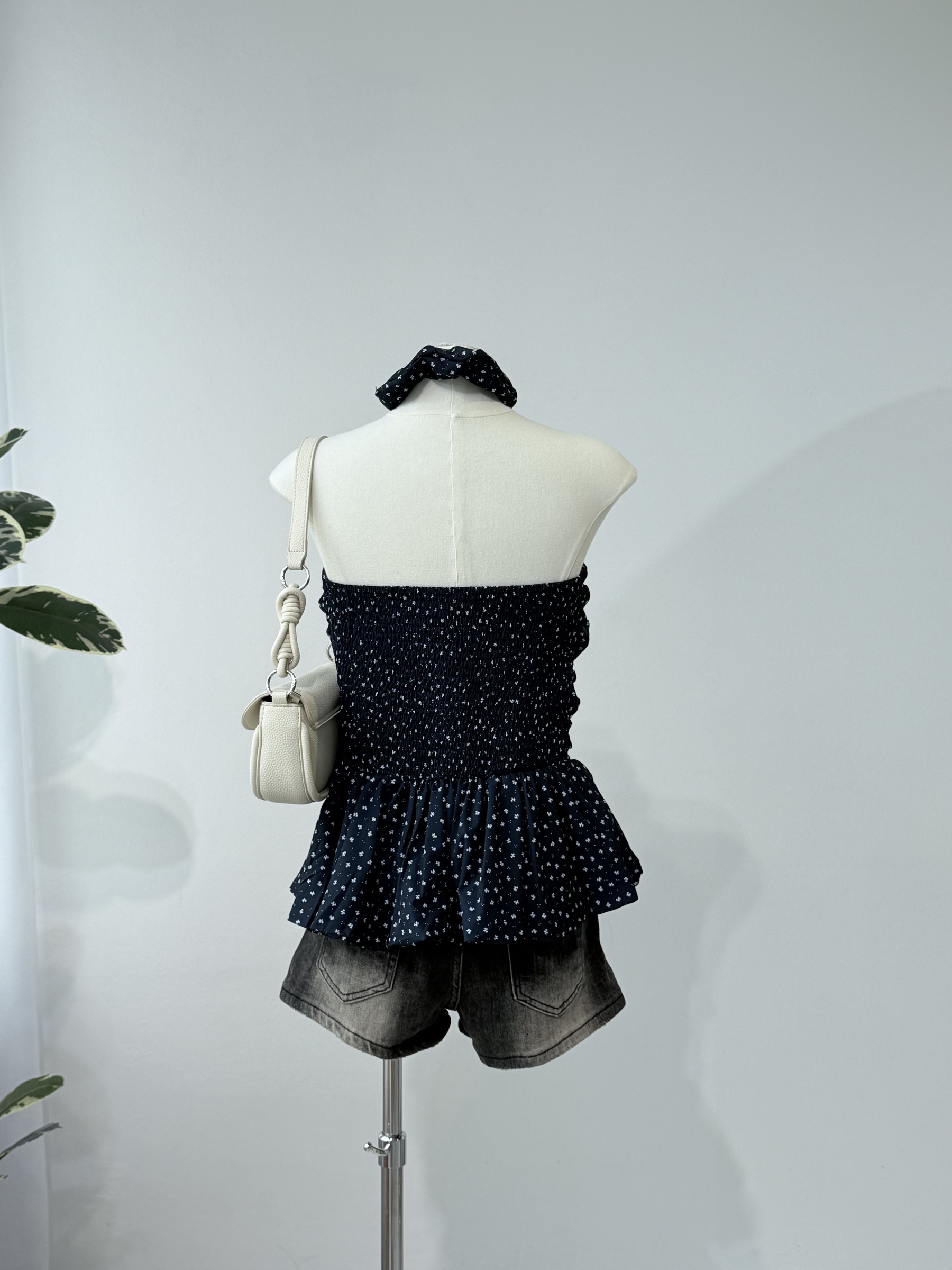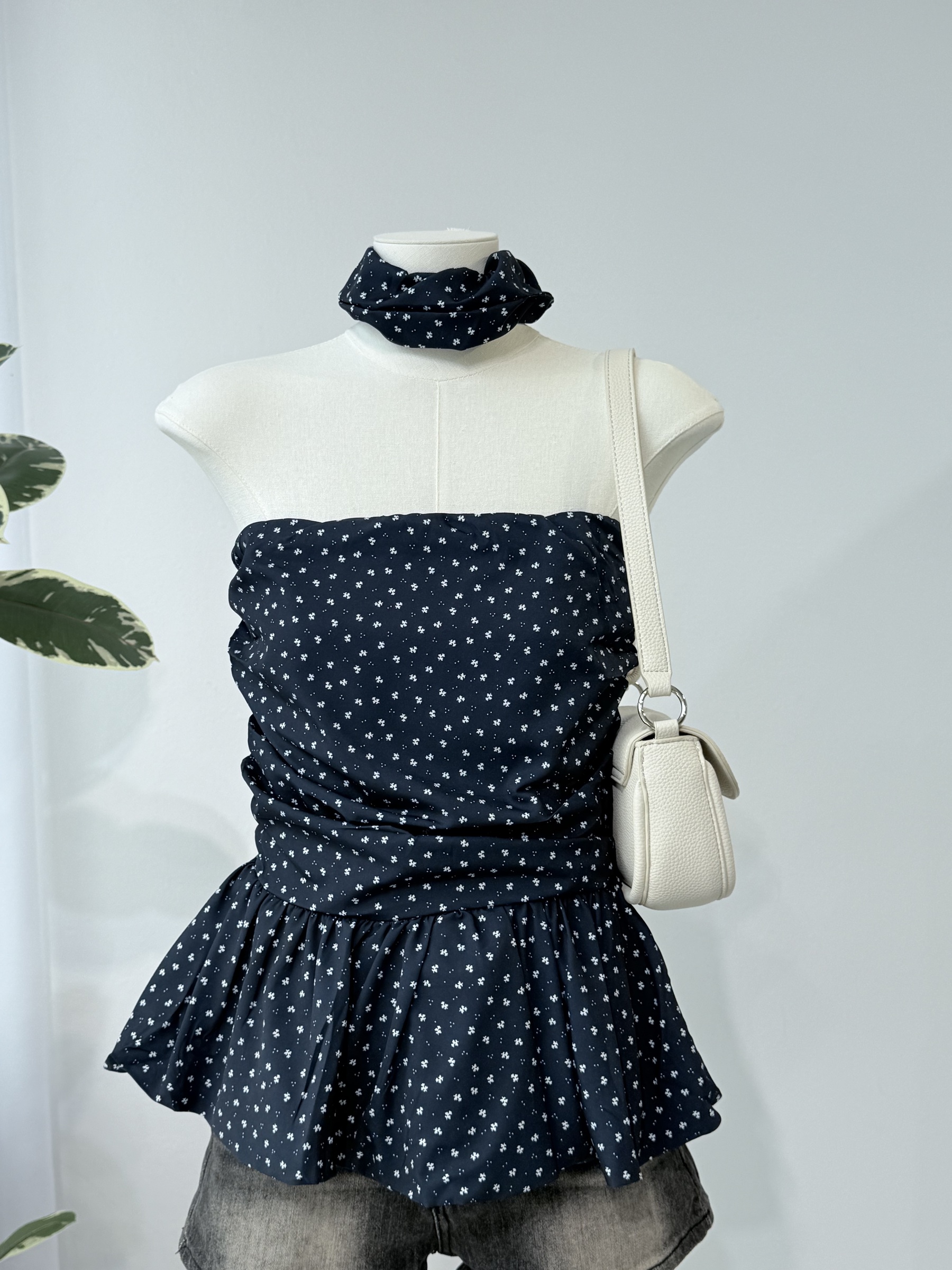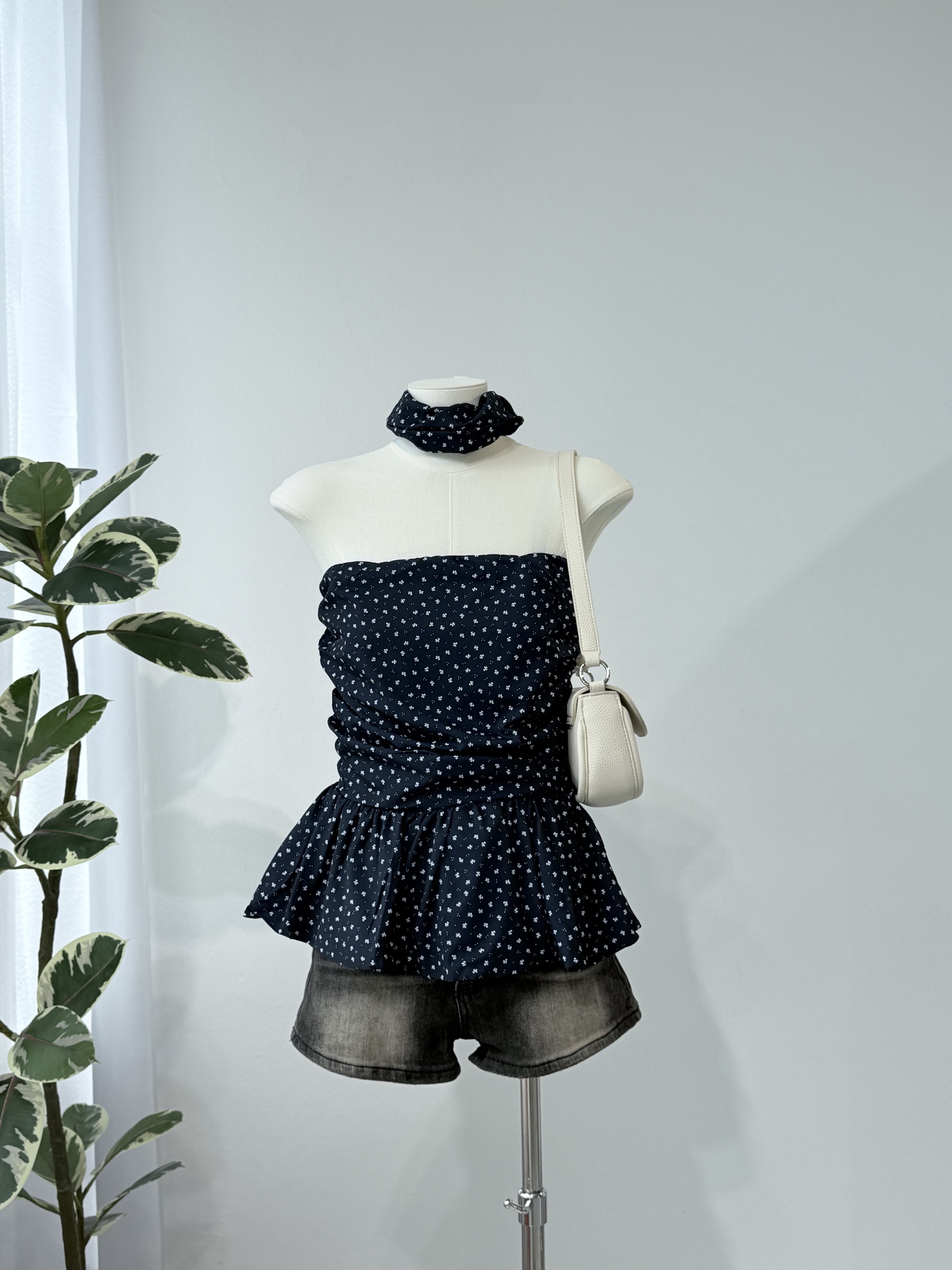 Floral Tube Top with Scrunchie 碎花抹胸+发圈套装