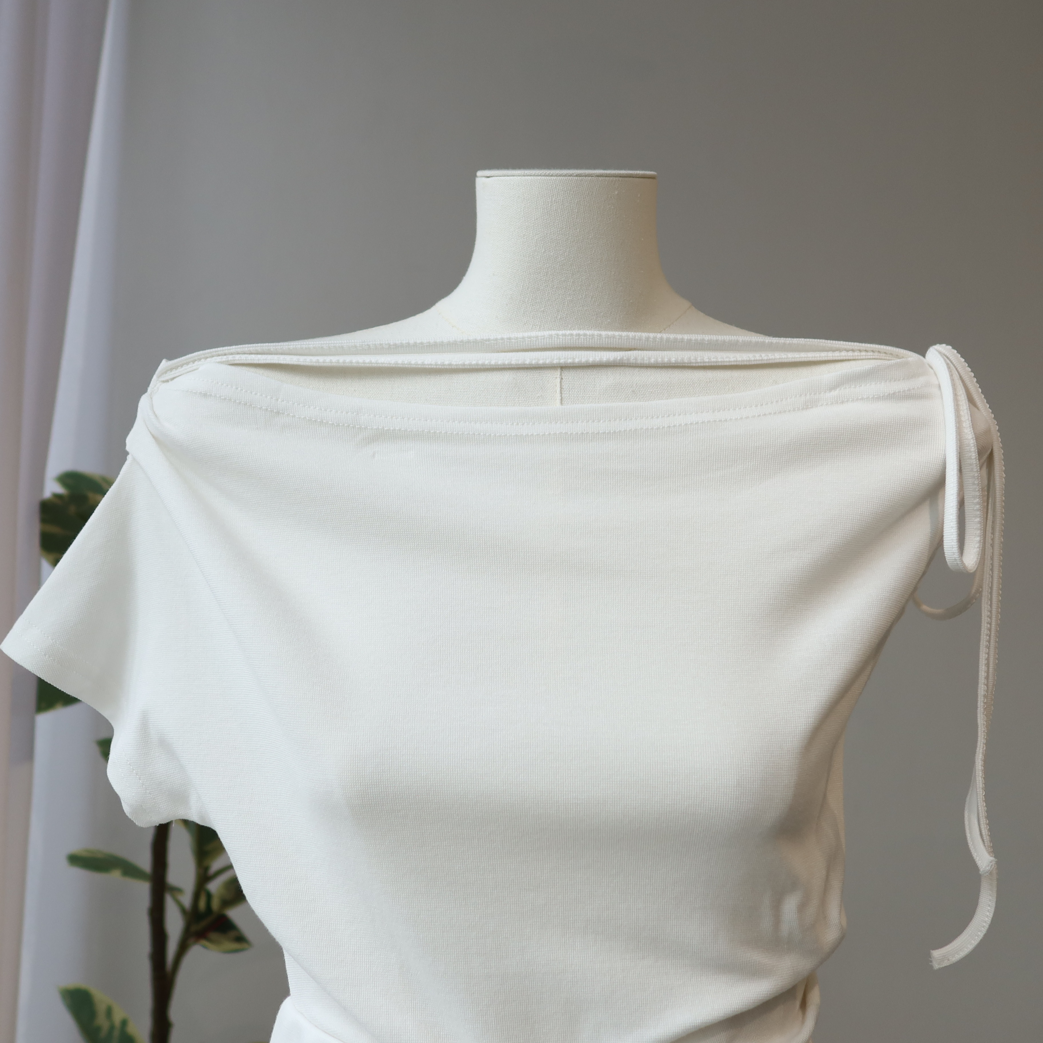 Ruched One-shoulder Top 斜肩系带修身上衣