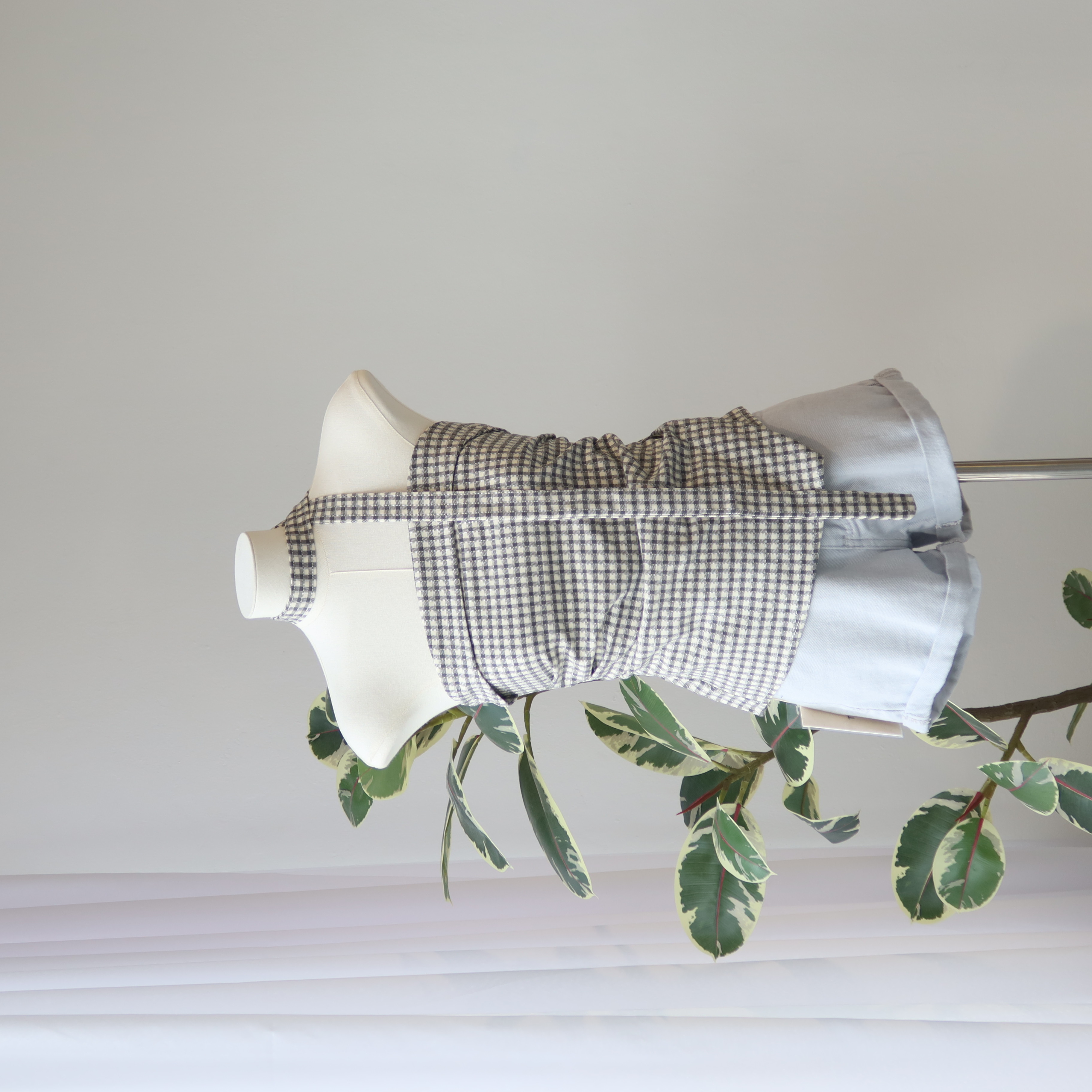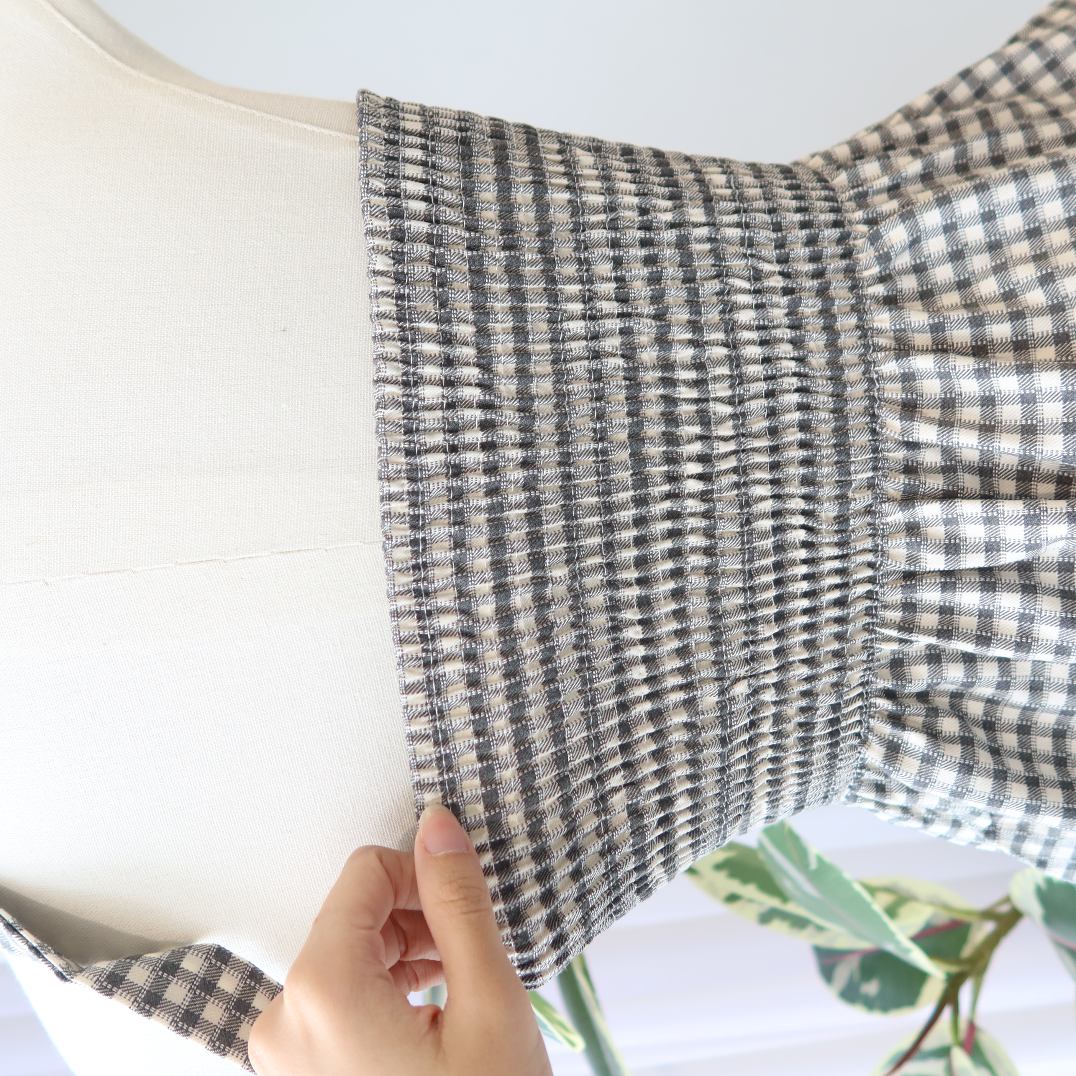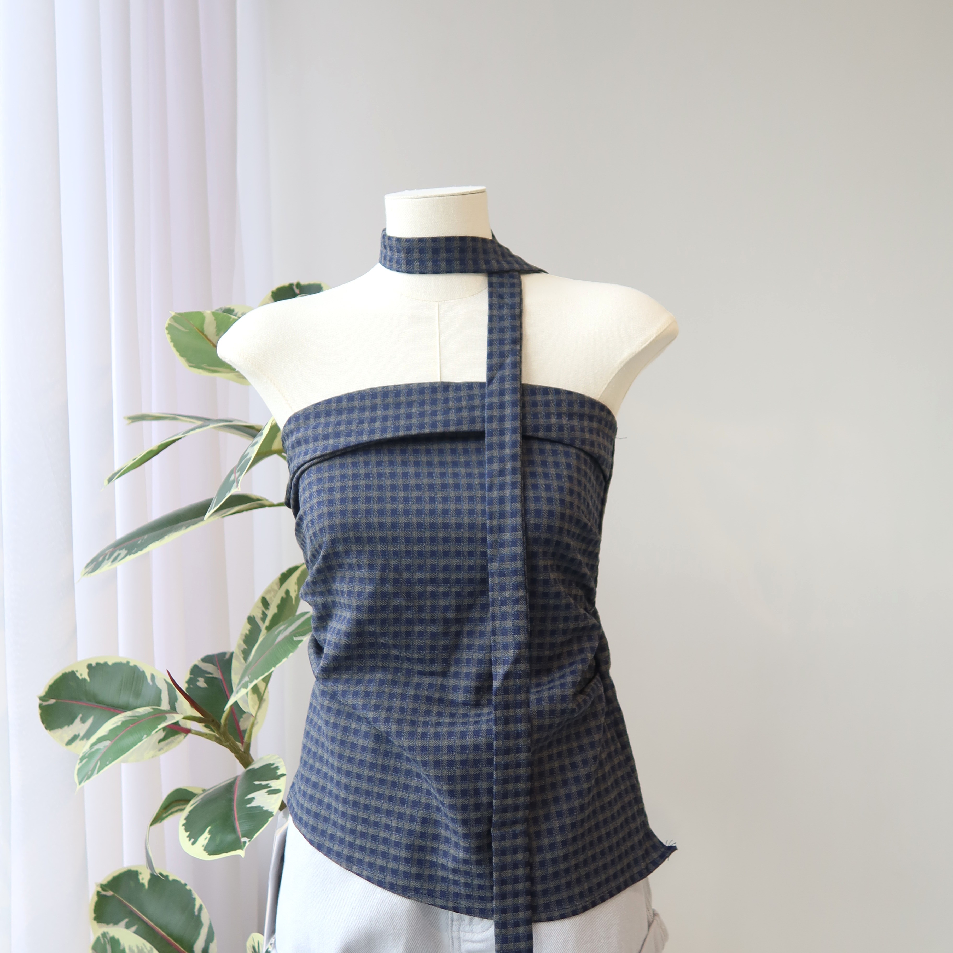 Asym Check Top 系带格子上衣