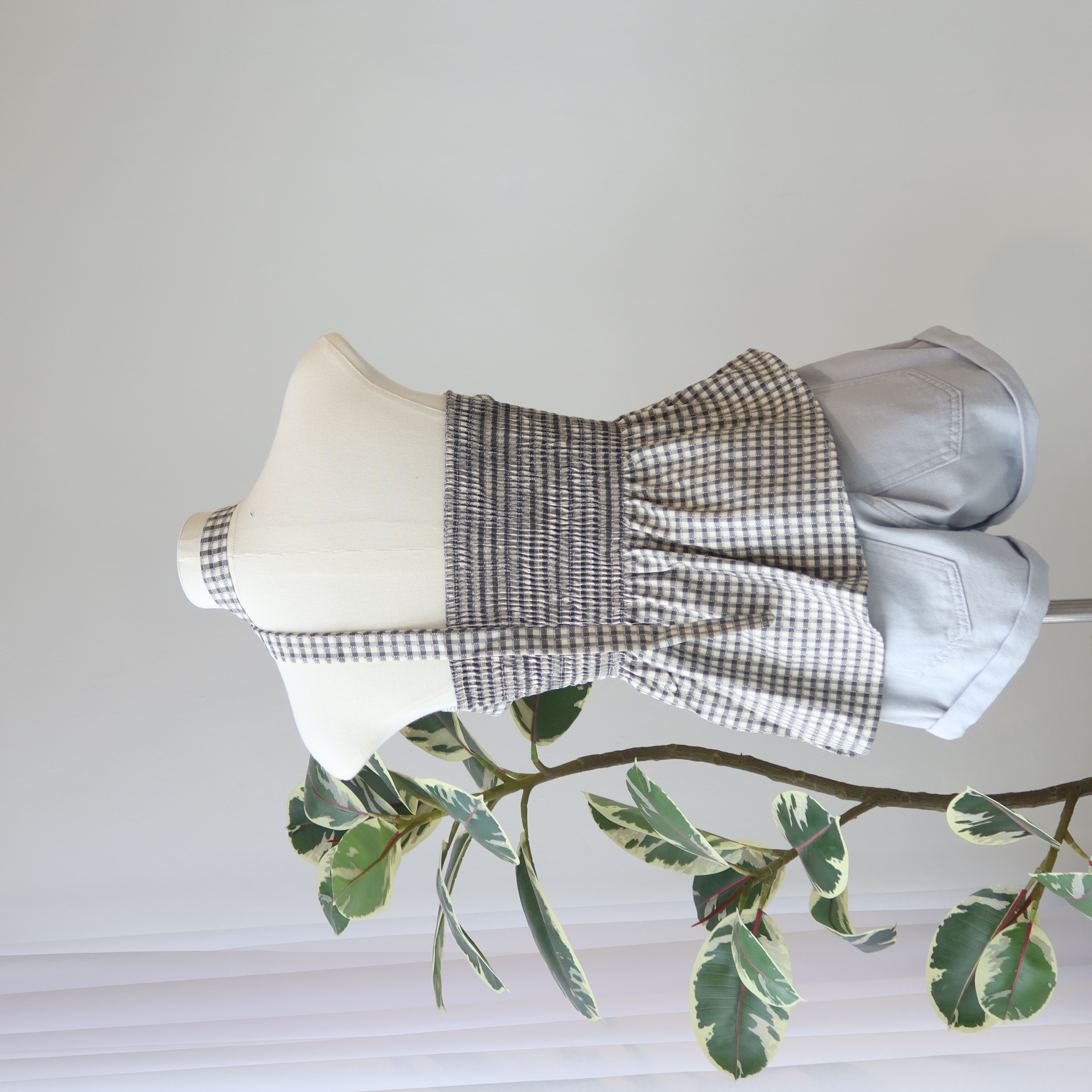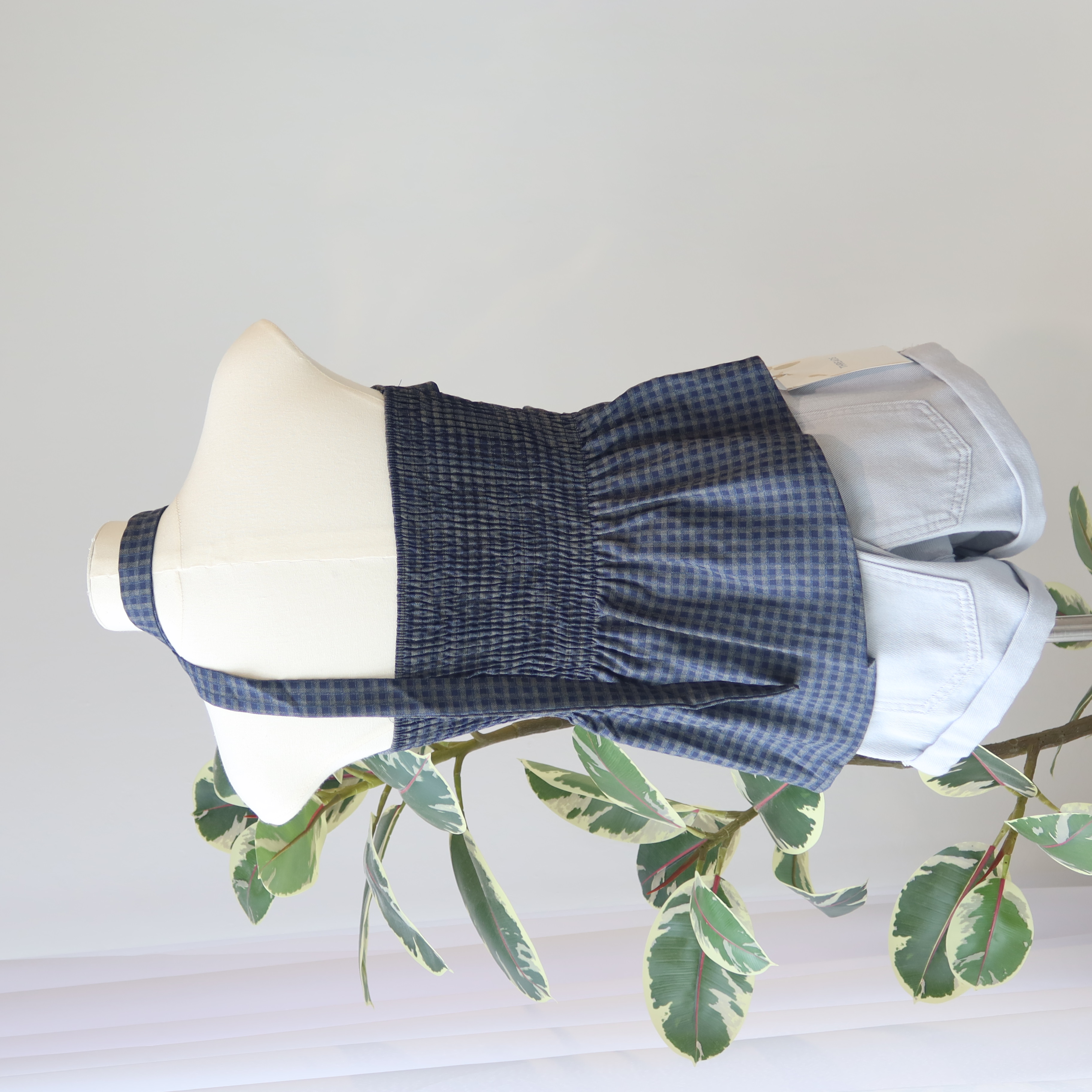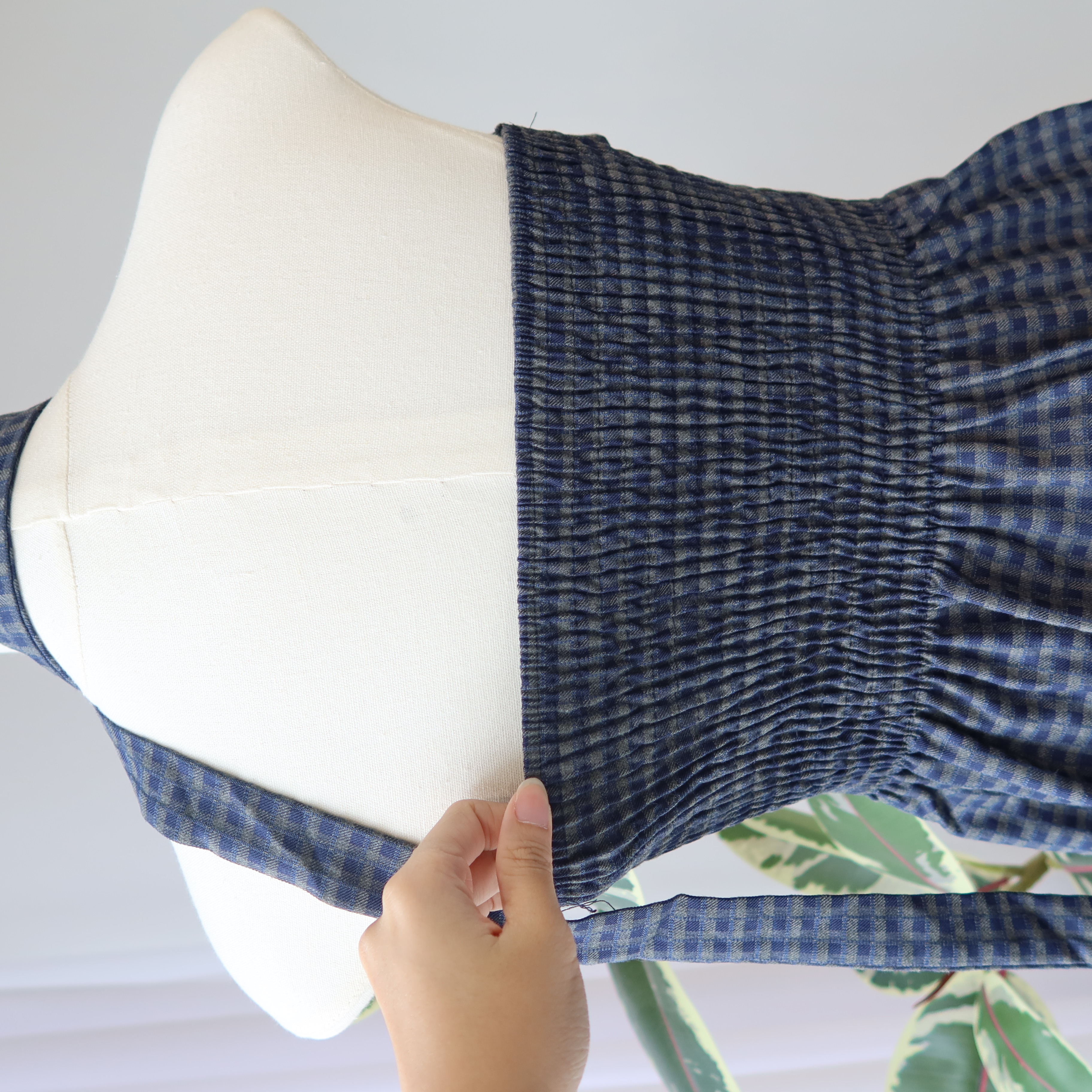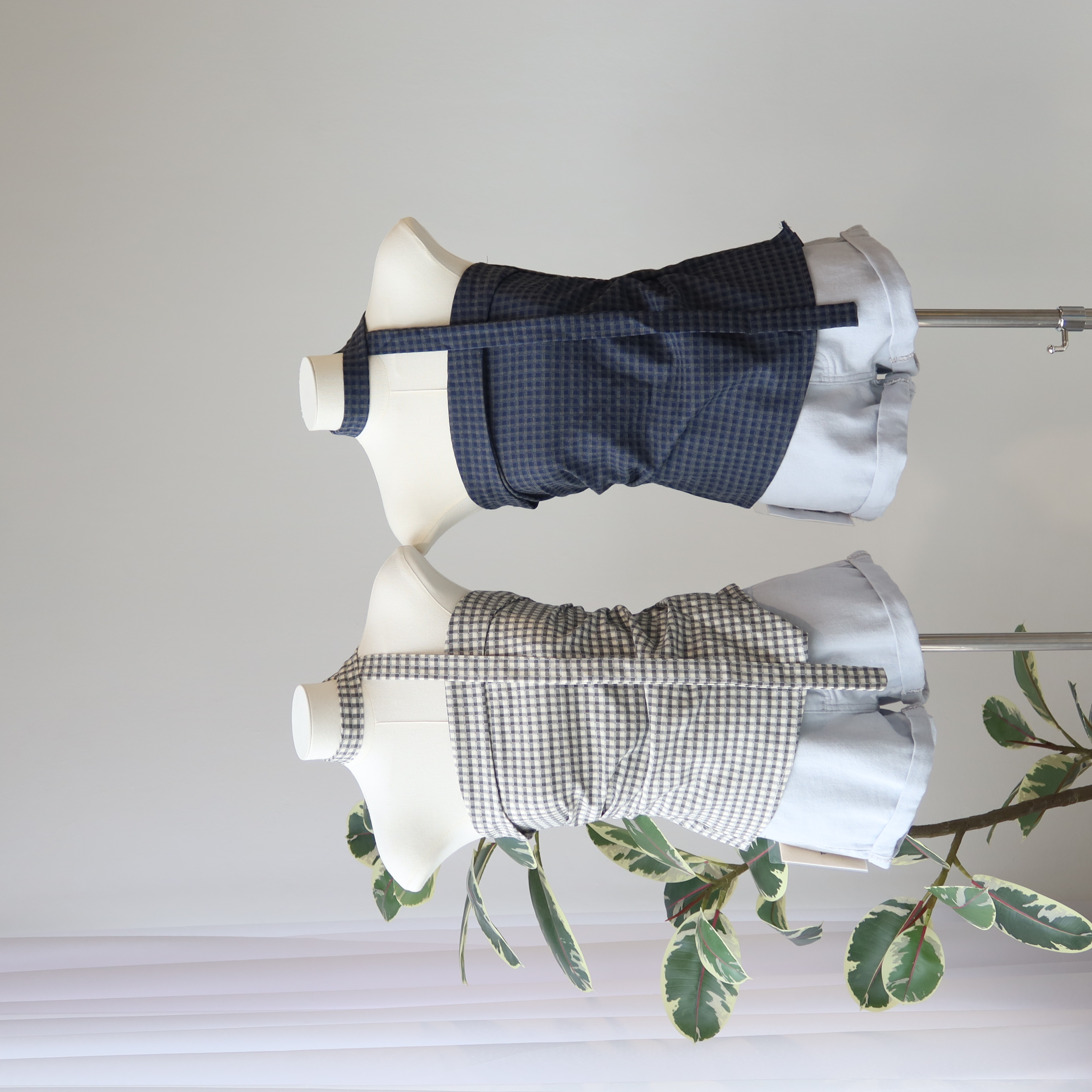 Asym Check Top 系带格子上衣