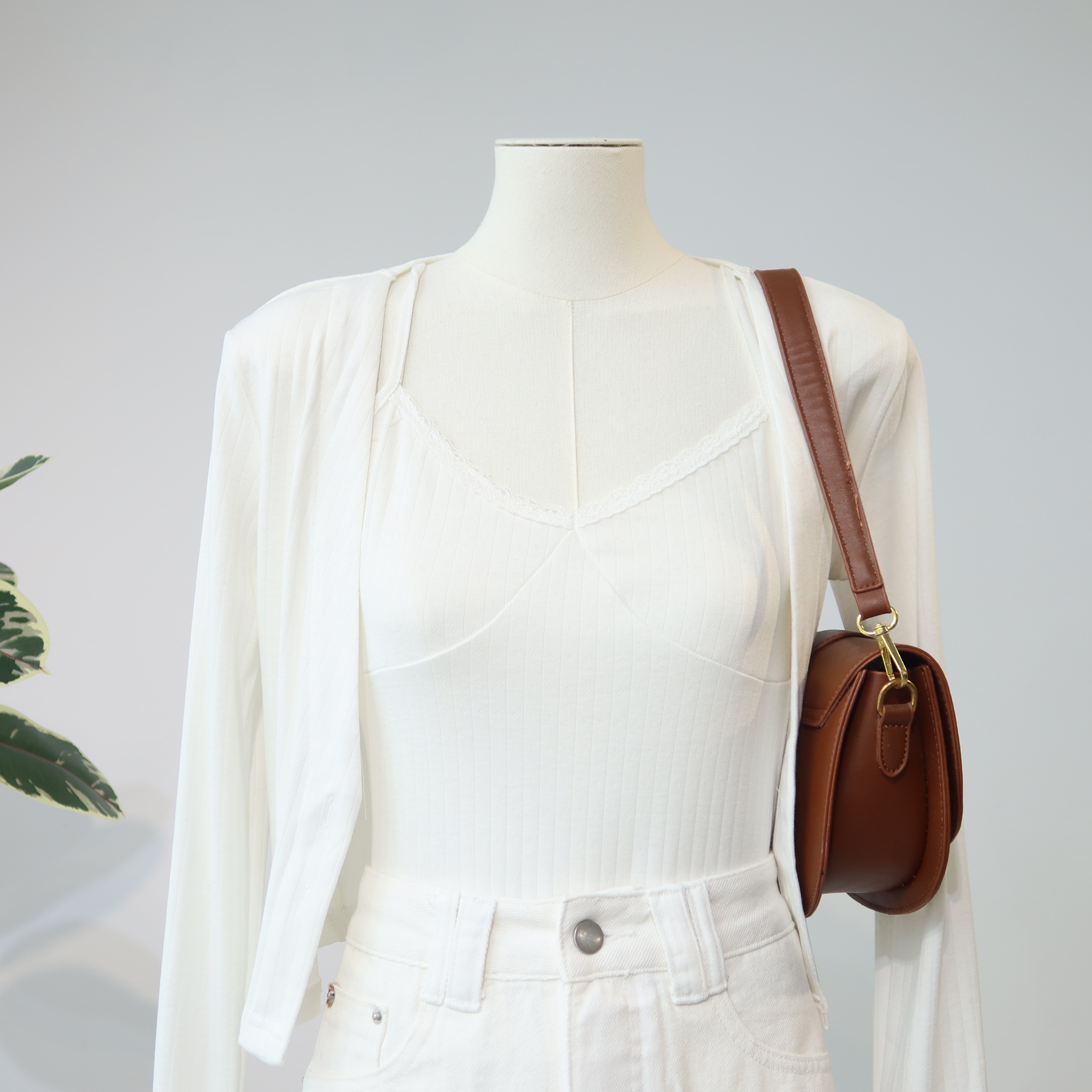 Lace Cami & V Cardigan Set 蕾丝吊带+V领开衫两件套